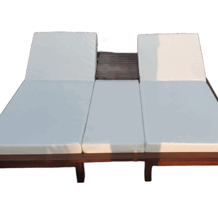 Double Wooden Chaise Lounge Set with Coffee Table (Solid Beech)